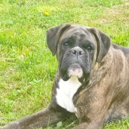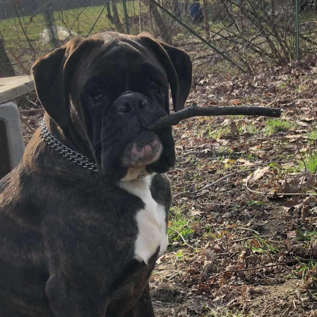Femmina tigrata scura con poco bianco.